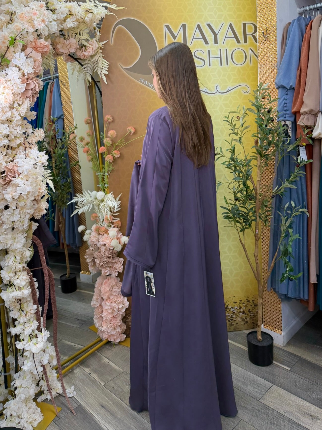 The Lavender Tie Abaya is a graceful and elegant three-piece set designed for effortless modest style. This set features a soft ivory underdress paired with a flowing lavender abaya layered on top, creating a refined and modest silhouette. The front tie detail adds a delicate touch while allowing for an adjustable and flattering fit. A matching hijab is also included, making this a complete and coordinated look.